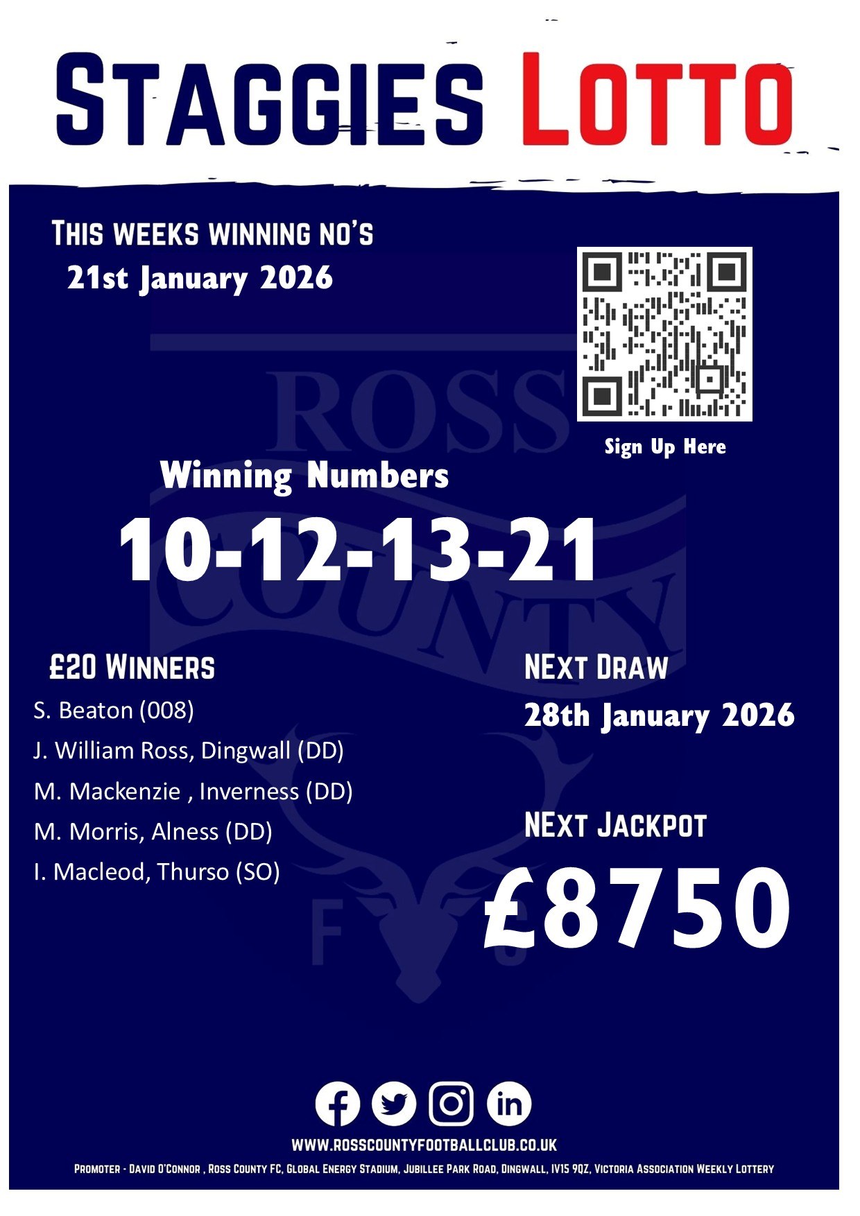 For just £1 a week, players have the chance of winning weekly cash prizes including our Jackpot!