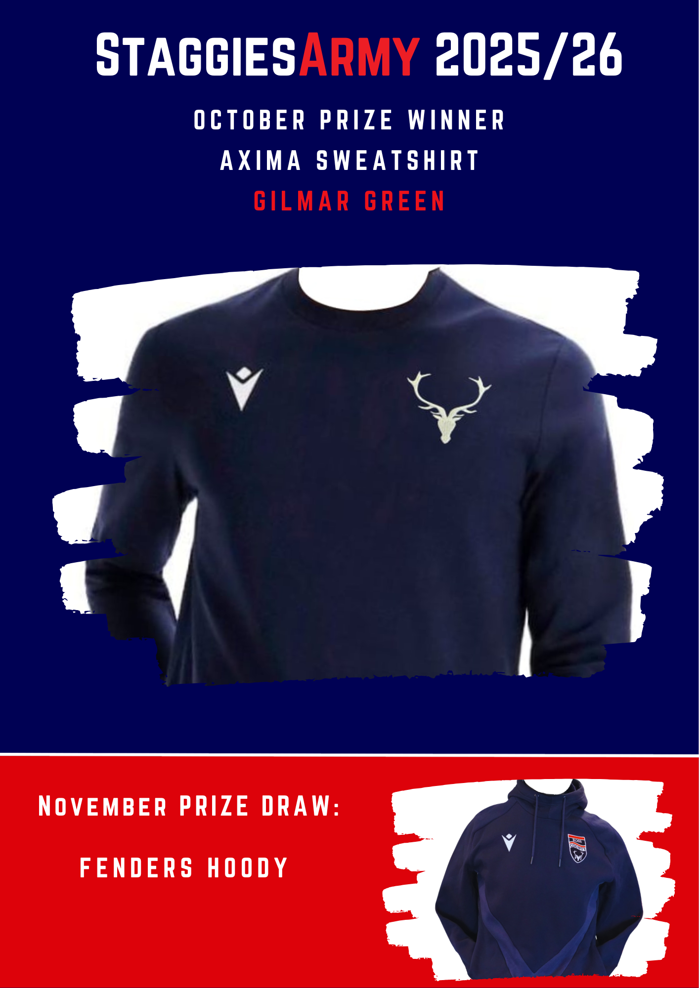 Staggies Army Monthly Draw Winner for October Congratulations to Gilmar Green (Gold Member).