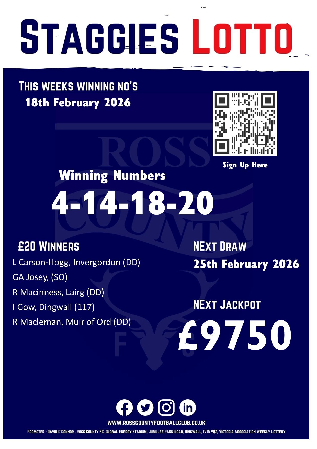 County chairman, Roy MacGregor, said: "The lottery plays a very important part in funding our work with the youth players who are the future of the club.