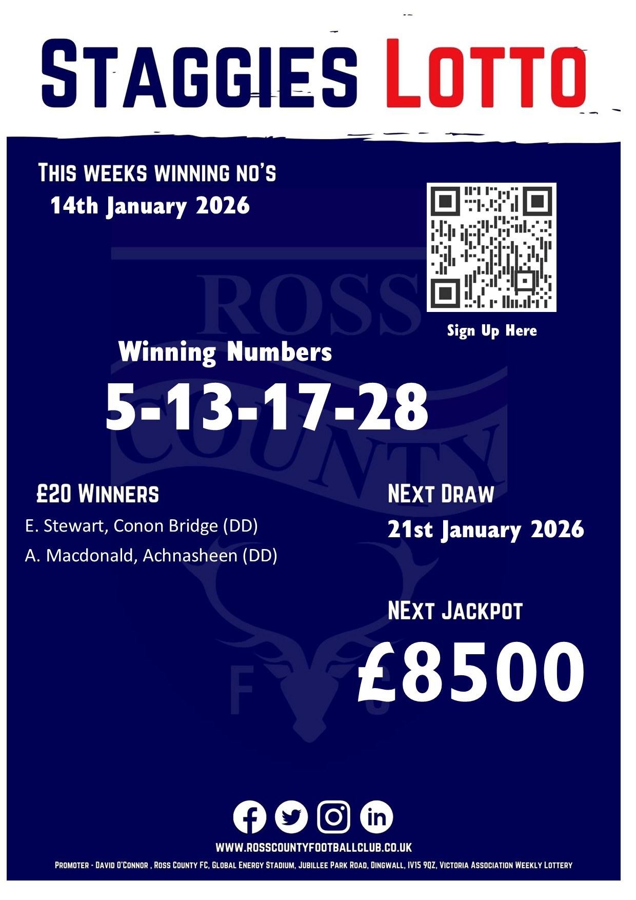 For just £1 a week, players have the chance of winning weekly cash prizes including our Jackpot!